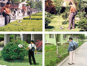 環保節能型多功能電動園林修剪機(又稱:電動綠籬機,電動割灌機,電動割草機)專利產品,專修超低矮綠籬、超寬幅綠籬、斜面綠籬、波面綠籬和球形榆籬,可輔助修剪草坪。本機可提高效率、降低噪聲、降低養護成本,加快工程進度,節省雇工費用! 一、山西太原綠籬機技術參數 主機重量:2.5公斤;功率:100瓦;轉速:每分鐘5000轉;蓄電池:2組,24伏;刀片長度:30公分。 二、山西太原綠籬機技術特征 ① 節能、低噪聲、無污染。可基本或完全替代高能耗的汽油機。 ② 多功能。本機可“一機多用”。既可用于綠化養護、園藝造景,又可用于茶樹的生態修剪。如只用于綠化修剪,則也具有“多功能”的特點,不僅可修剪綠籬,還可修剪球形樹籬、清除雜草和灌木叢、收割牧草。在草坪的平整度、傾斜度、草坪的寬窄度達不到要求,推車式草坪機無法正常作業的情況下,本機還可用來輔助修剪草坪,消除作業“死角”。 ③ 節能效益顯著。機動修剪機一天耗油20多元,而本機工作一天下來充電僅耗電0.6度。 ④ 修剪效率高。單人每天可修剪6畝,相當于6人用剪刀修剪1天的工作量。 ⑤ 可延伸作業半徑,降低特殊作業場合的施工難度,提高觀察視野,保證修剪后蓬面齊整美觀: 新建的超低矮綠籬的修剪——操作手挺直腰板作業,再不用蹲著修剪低矮綠籬; 超寬幅綠籬的修剪——操作手不用再鉆進鉆出綠籬,忍受蚊叮蟲咬,也不用再擔心毒蛇危害; 斜面綠籬的修剪——操作手只需略為調整刀盤的角度,既可保正修剪后綠籬蓬面的任意傾斜角度造型; 高大球形樹籬修剪——過去必須站在人字梯、用高枝剪修剪的,現在站在地面即可任意修剪造型。 不規則造型、卡通造型綠籬修剪——可以隨意塑造。 ⑥ 作業性能穩定,修剪質量能滿足園藝要求。蓬面平整度優于手工修剪,基本無漏剪、撕裂率小于10%。修剪后接近綠籬的自然生長狀態,形成的樹冠面較大,修剪面既整齊又美觀,而且芽葉萌發比手工修剪萌發整齊,且萌發數較多。 ⑦ 耐用性好,故障率低。不象機動型割灌機、綠籬機“嬌氣”。 |